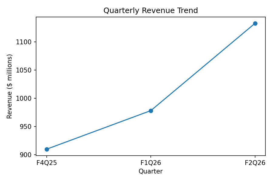 For the second quarter of fiscal year 2026, Fabrinet reported consolidated revenue of $1,132.9 million and GAAP net income of $112.6 million. Revenue increased 36% from the corresponding quarter a year earlier, while net income rose 30% year over year.