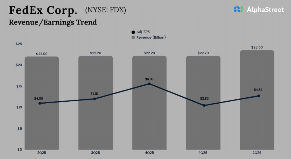 Cargo giant FedEx Corp. (NYSE: FDX) has reported an increase in revenues and adjusted earnings for the second quarter of fiscal 2026. The numbers also beat analysts’ estimates.
