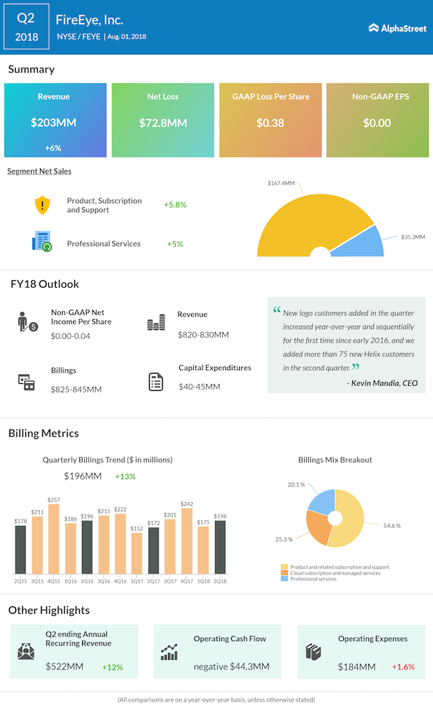 Revenue increased 6% to $203 million. Sales growth was broad-based across all geographies and product families, and demand for its differentiated security products and services is increasing as it enters the second half of 2018.