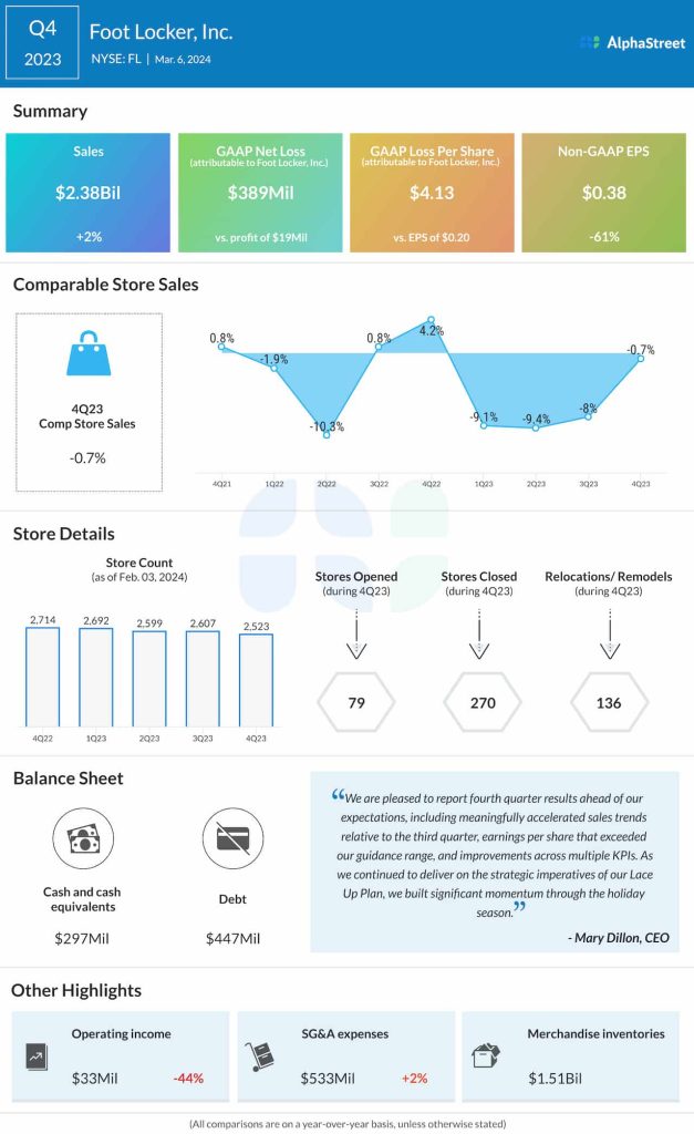 Total revenues moved up 2% annually to $2.38 billion in the fourth quarter. Excluding the effect of foreign exchange rate fluctuations, sales increased 1.5%. Comparable-store sales were down 0.7%.