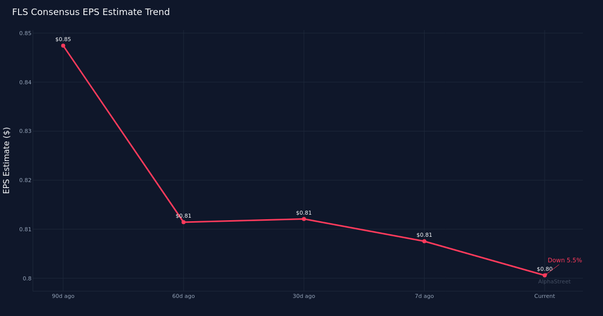 Profitability Trajectory. Industrial machinery companies like Flowserve face persistent margin pressures from raw material costs, labor inflation, and competitive dynamics in global infrastructure and energy markets. Whether the company has maintained, expanded, or compressed margins relative to that prior-year baseline will reveal much about pricing power, productivity initiatives, and mix dynamics across its pump, valve, and aftermarket service portfolio. The gap between modest revenue growth expectations and more robust earnings growth implies operating leverage is doing meaningful work.