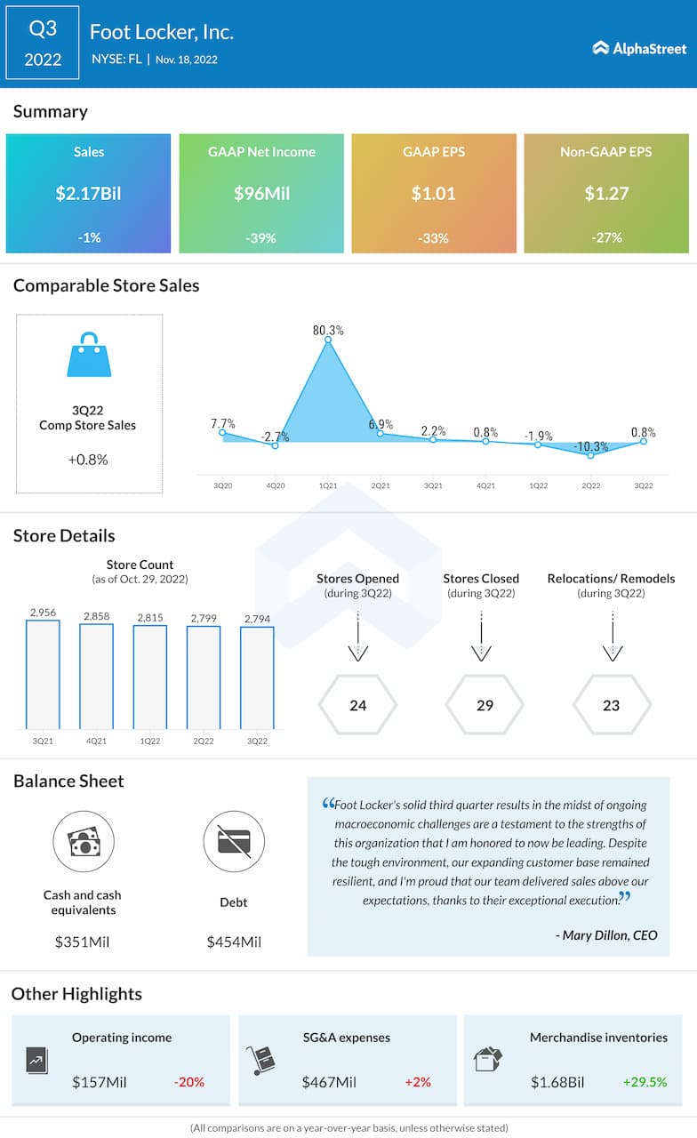 Foot Locker, Inc. (NYSE: FL) reported third quarter 2022 earnings results today.