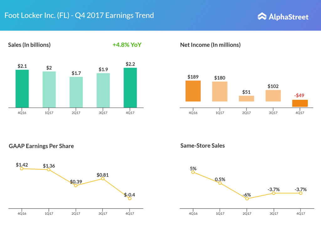 During the quarter, Foot Locker paid dividends of $0.31 per share to shareholders and repurchased $105 million worth of common stock. For the fiscal 2018, the footwear retailer increased its quarterly dividend payout to $0.345 per share.