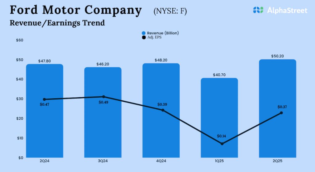 The bottom line was negatively impacted by special charges related to a field service action and expenses related to a previously announced cancellation of an electric vehicle program. At $50.2 billion, second-quarter revenue was up 5% year-over-year.