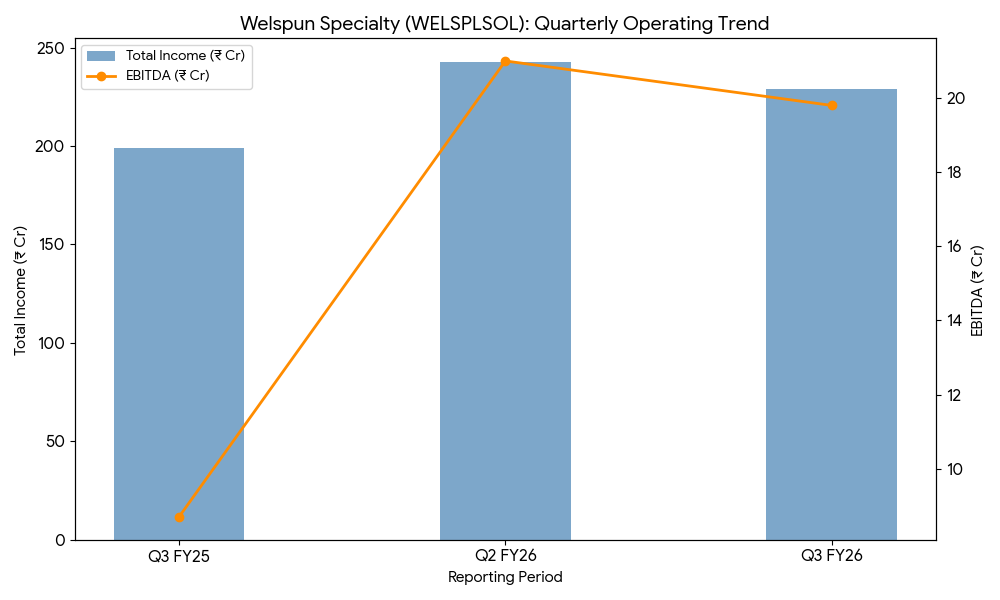 Welspun Specialty Solutions Ltd (NSE: WELSPLSOL) reported a strong operational turnaround in Q3 FY26, posting a Net Profit of ₹9.51 crore, reversing a net loss of ₹3.60 crore from the previous year. Total Income grew by 16% year-over-year to ₹226.05 crore, underpinned by robust domestic demand in the energy and public infrastructure sectors. The company’s EBITDA surged 126.7% to ₹17.0 crore, with operating margins nearly doubling to 7.5% due to improved cost efficiencies and a shift toward higher-margin stainless steel seamless pipes. Despite the annual growth, the company faced slight sequential pressure, with revenue dipping 6% from Q2 FY26. Following the announcement on January 27, 2026, the stock initially jumped over 6% to ₹36.50 before paring gains to close at ₹34.29 (-3.38%), as investors weighed global export volatility against domestic strength.