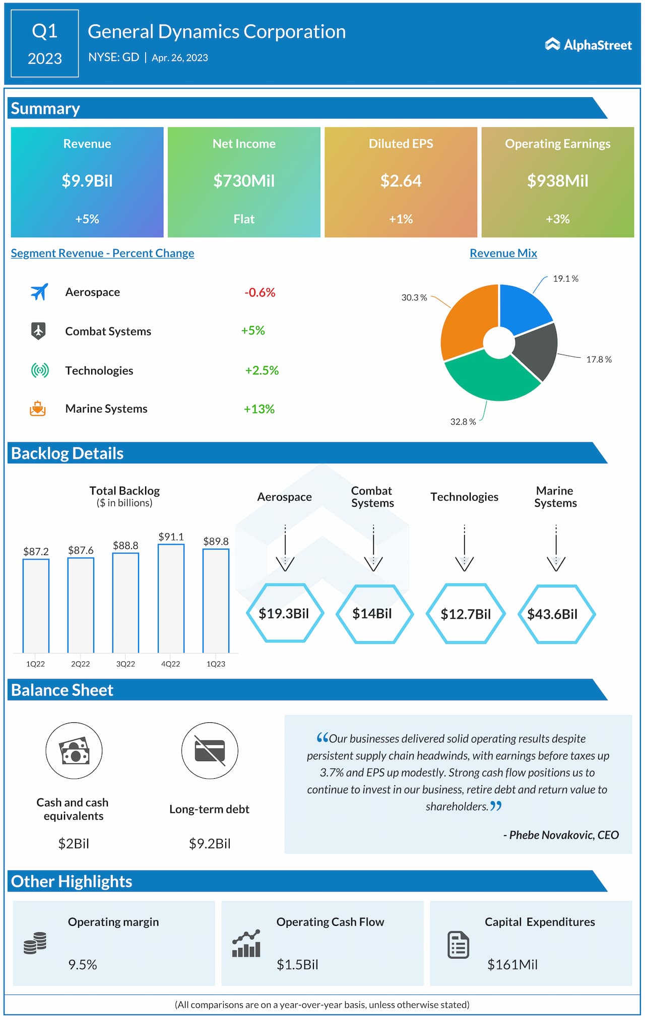 General Dynamics (NYSE: GD) reported its first quarter 2023 earnings results today.