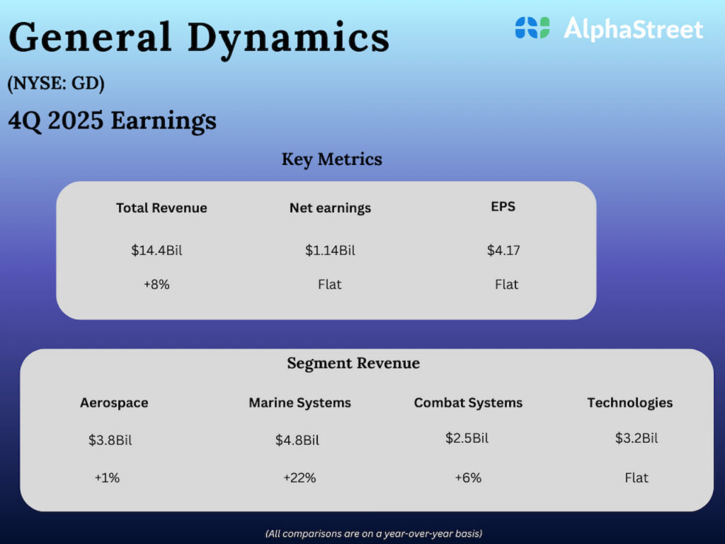 “We had a solid fourth quarter, capping off a year that saw growth in revenue and earnings in all four segments coupled with an impressive 30% growth in company-wide backlog, As we focus on execution of programs for our customers, we are also preparing aggressively for future growth, investing nearly $1.2 billion in capital expenditures in 2025 – with even more investments planned in the year ahead,” said Phebe Novakovic, CEO of General Dynamics.