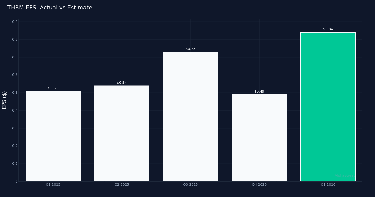 For the first quarter ended March 31, 2026, Gentherm delivered product revenues of $393.7 million. The company reported a GAAP diluted earnings per share (EPS) of $0.14, while the adjusted diluted earnings per share was $0.84.
