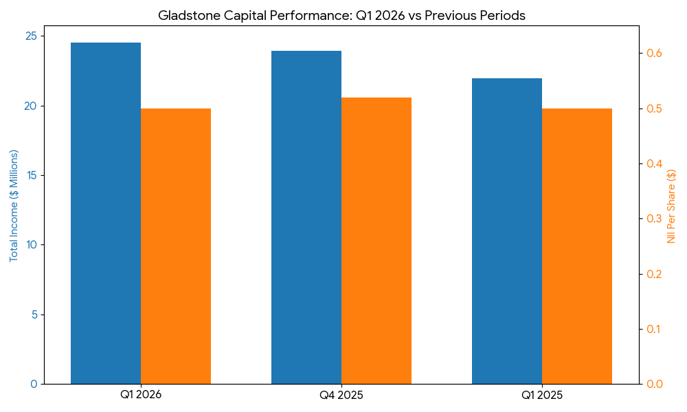 - Total Investment Income: $24.51 million, up 2.4% from the prior quarter and up 11.6% from $21.96 million in the same period last year.