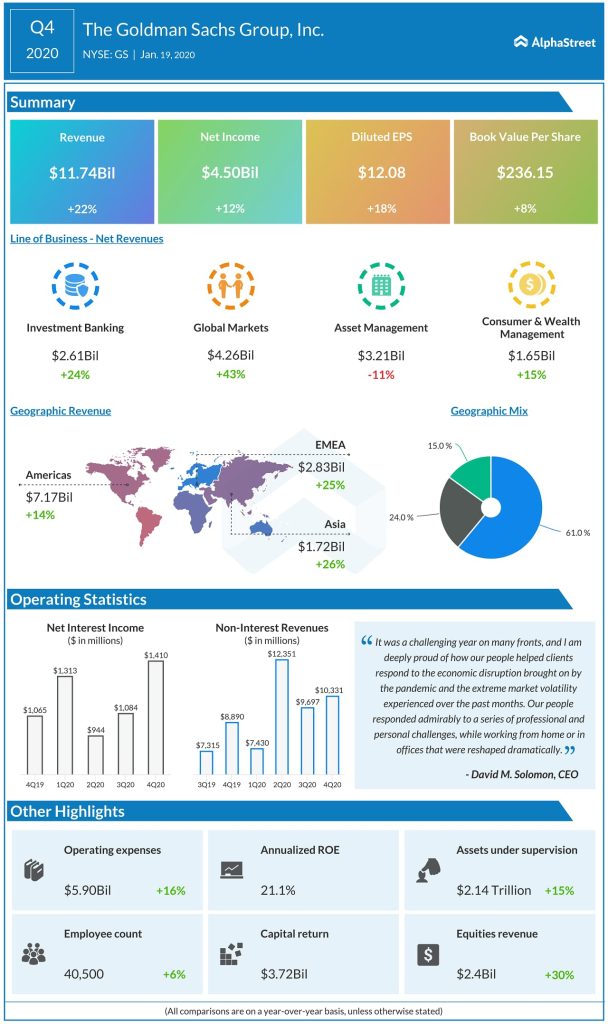 Goldman Sachs (NYSE: GS) today reported its fourth quarter financial results for the period ended December 31, 2020.
