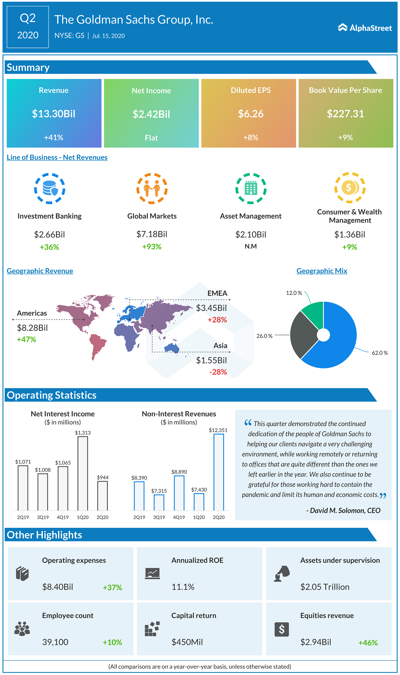 Goldman Sachs (NYSE: GS) today announced its second quarter financial results for the period ended June 30, 2020.
