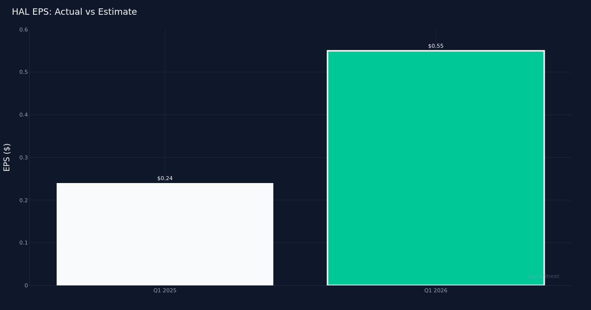 Halliburton Company reported first-quarter results that exceeded Wall Street expectations on the bottom line, with adjusted earnings of $0.55 per share beating the $0.50 consensus estimate by 10.0%. The oilfield services giant generated $5.40B in revenue for the quarter, essentially flat compared to the $5.42B recorded in Q1 2025, showing relative stability despite headwinds facing the broader sector.