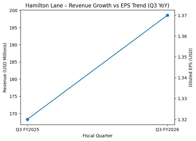 Consolidated net income rose to $92.8 million, representing a 20% increase from $77.5 million a year earlier. Net income attributable to Hamilton Lane Incorporated increased to $58.4 million from $53.0 million in the third quarter of fiscal 2025. Diluted earnings per share for Class A common stock rose to $1.37 from $1.32.