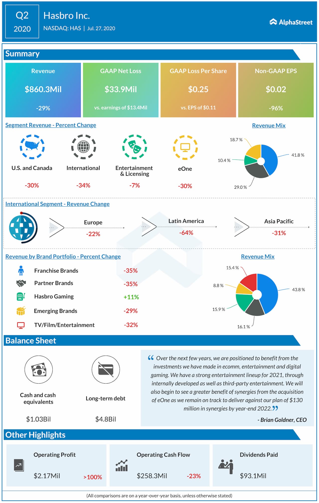 Toy-maker Hasbro Inc. (NASDAQ: HAS) reported second quarter 2020 earnings results today.