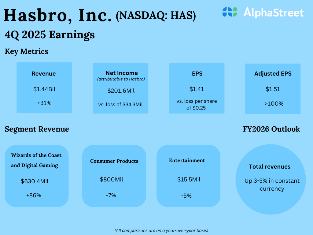Hasbro, Inc. (NASDAQ: HAS) reported its fourth quarter 2025 earnings results today.