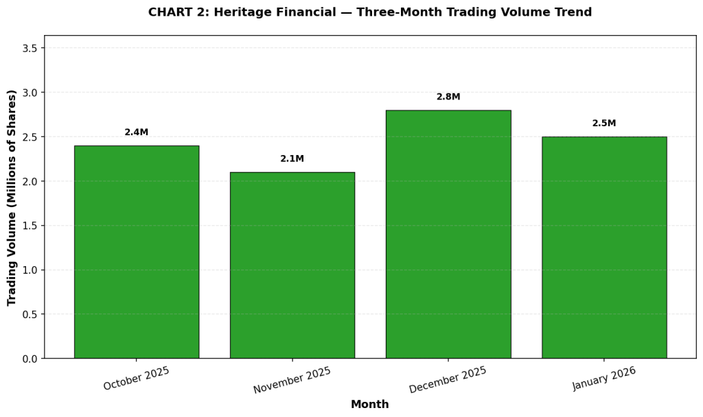 Note: Trading volume data reflects NASDAQ exchange transactions for HFWA. Volume patterns typical for regional bank equity trading with seasonal fluctuations.