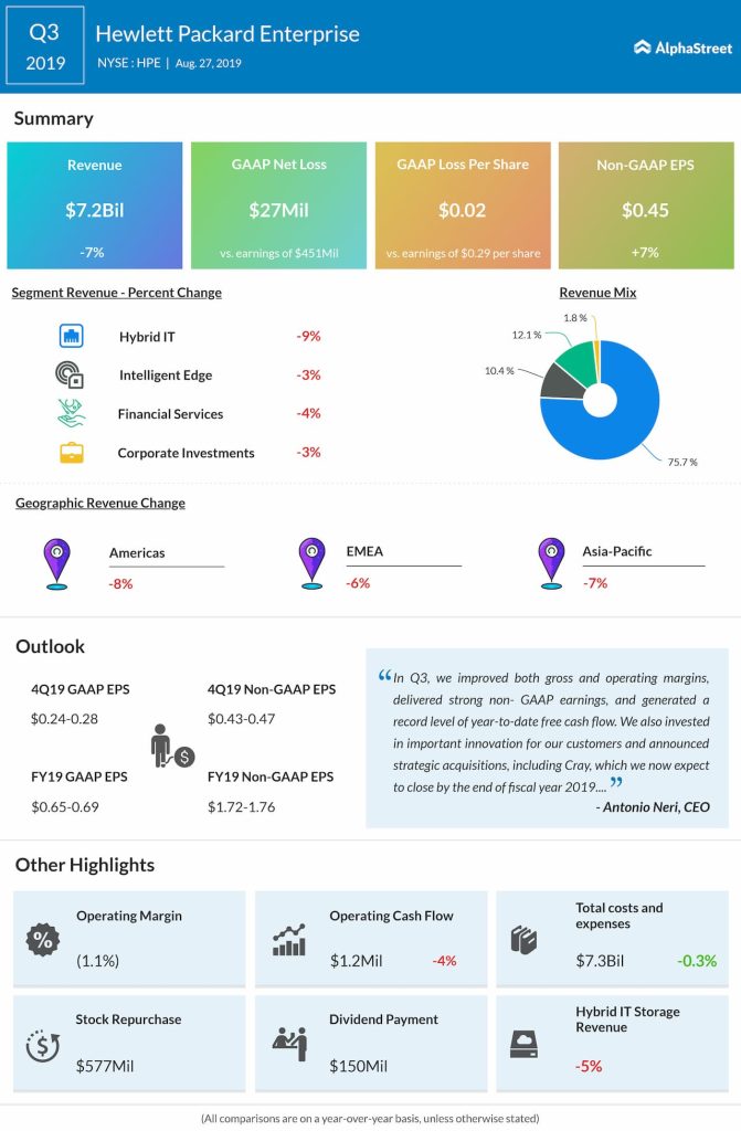 Hewlett Packard Enterprise raised its non-GAAP diluted net EPS outlook to a range of $1.72 to $1.76, compared to the prior range of $1.62 to $1.72.