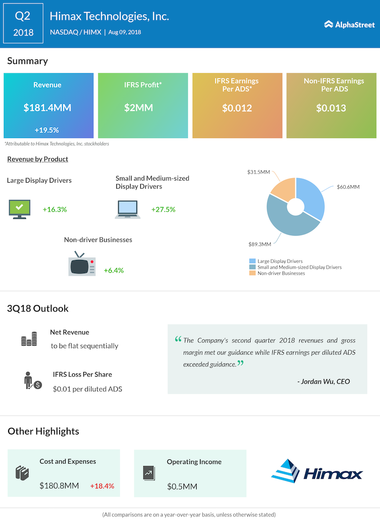 The rise in revenue was mainly due to the contribution from Himax’s small and medium-sized display drivers that posted over 27% increase in its revenues to $89.3 million.