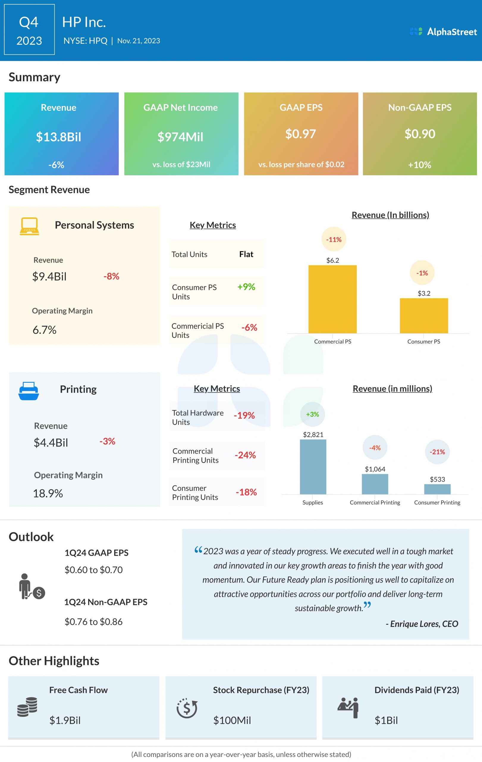 HP Inc. (NYSE: HPQ) reported fourth quarter 2023 earnings results today.