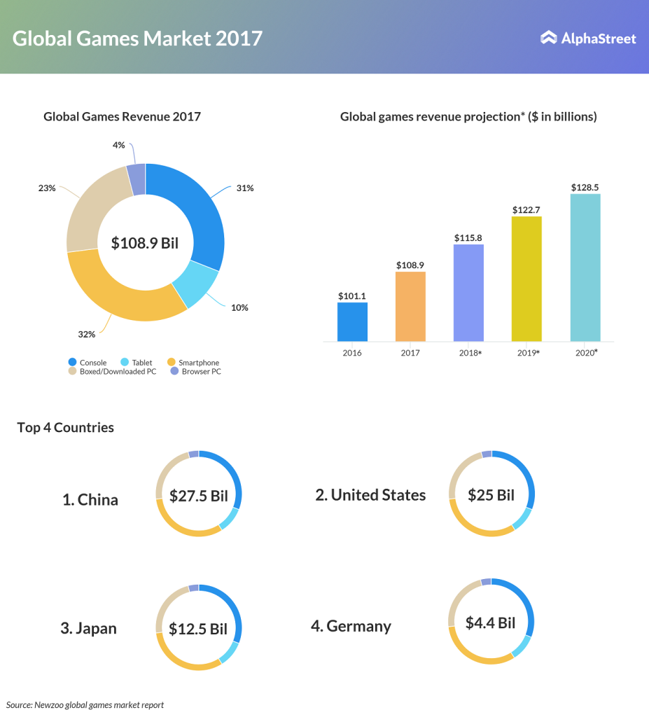 Gaming stocks have been some of the best performing technology stocks over the past few years. According to research firm Newzoo, the industry is predicted to grow more than 8% this year.