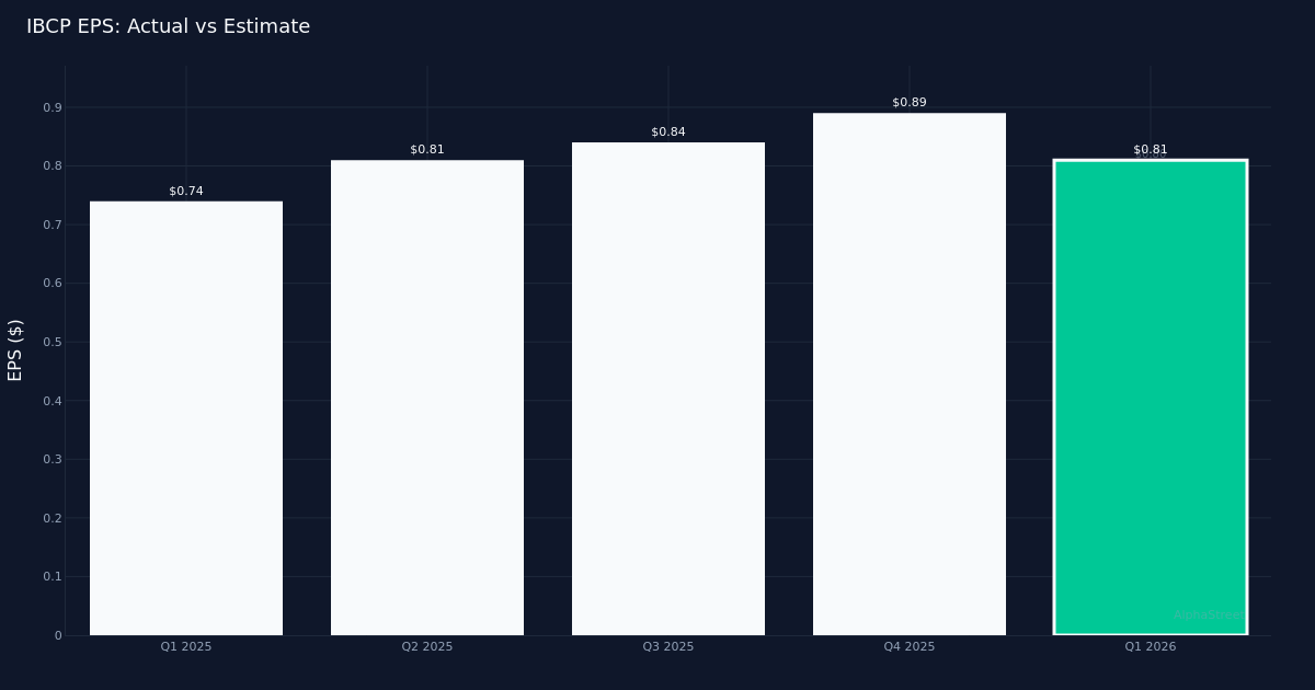 Independent Bank Corporation (IBCP) delivered Q1 2026 diluted earnings of $0.81 per share, surpassing analysts’ $0.80 forecast (beat by 1.3%).
