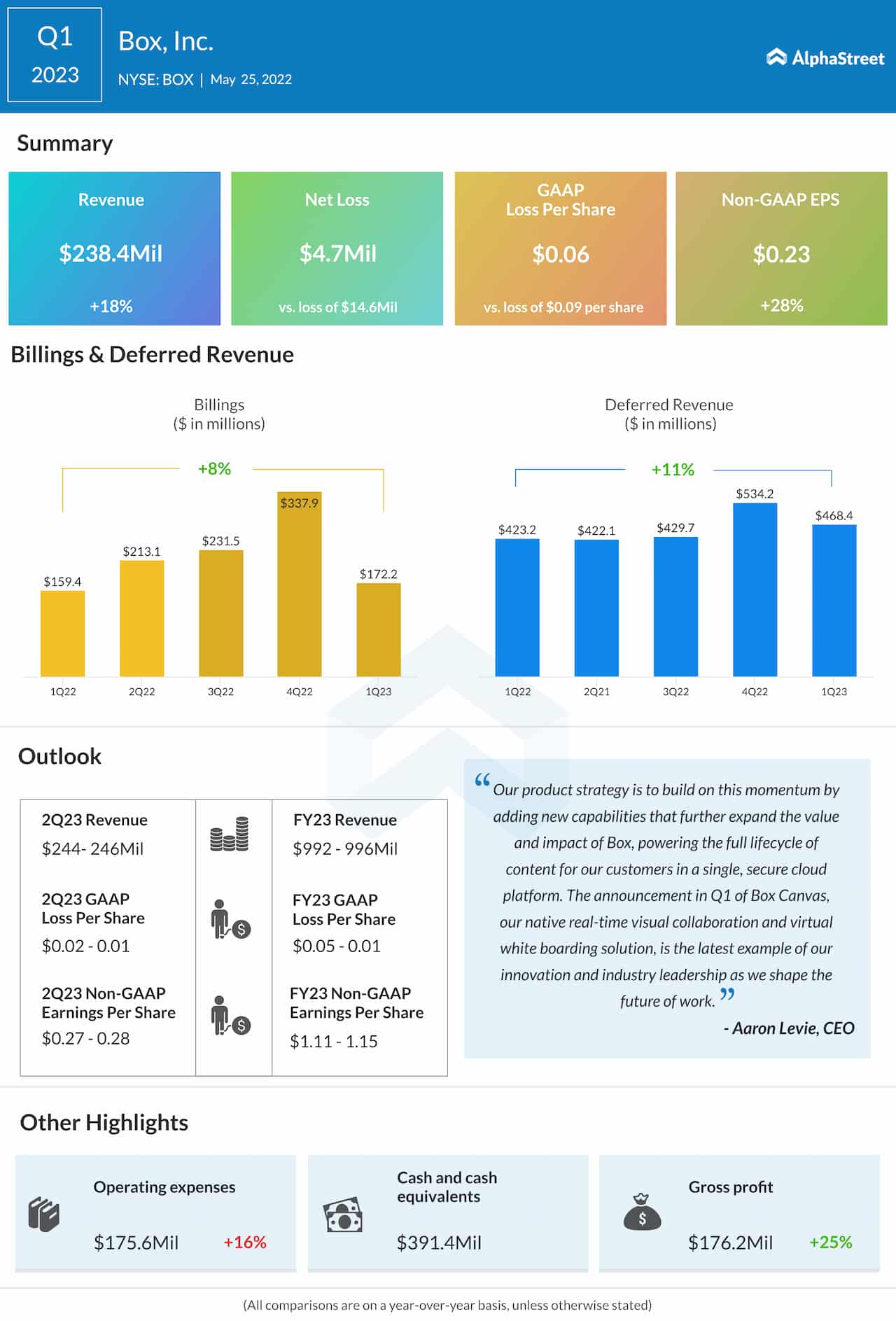 Content management platform Box Inc. (NYSE: BOX) has reported higher adjusted earnings and revenues for the first quarter of 2023. Both the top line and profit exceeded analysts’ expectations.