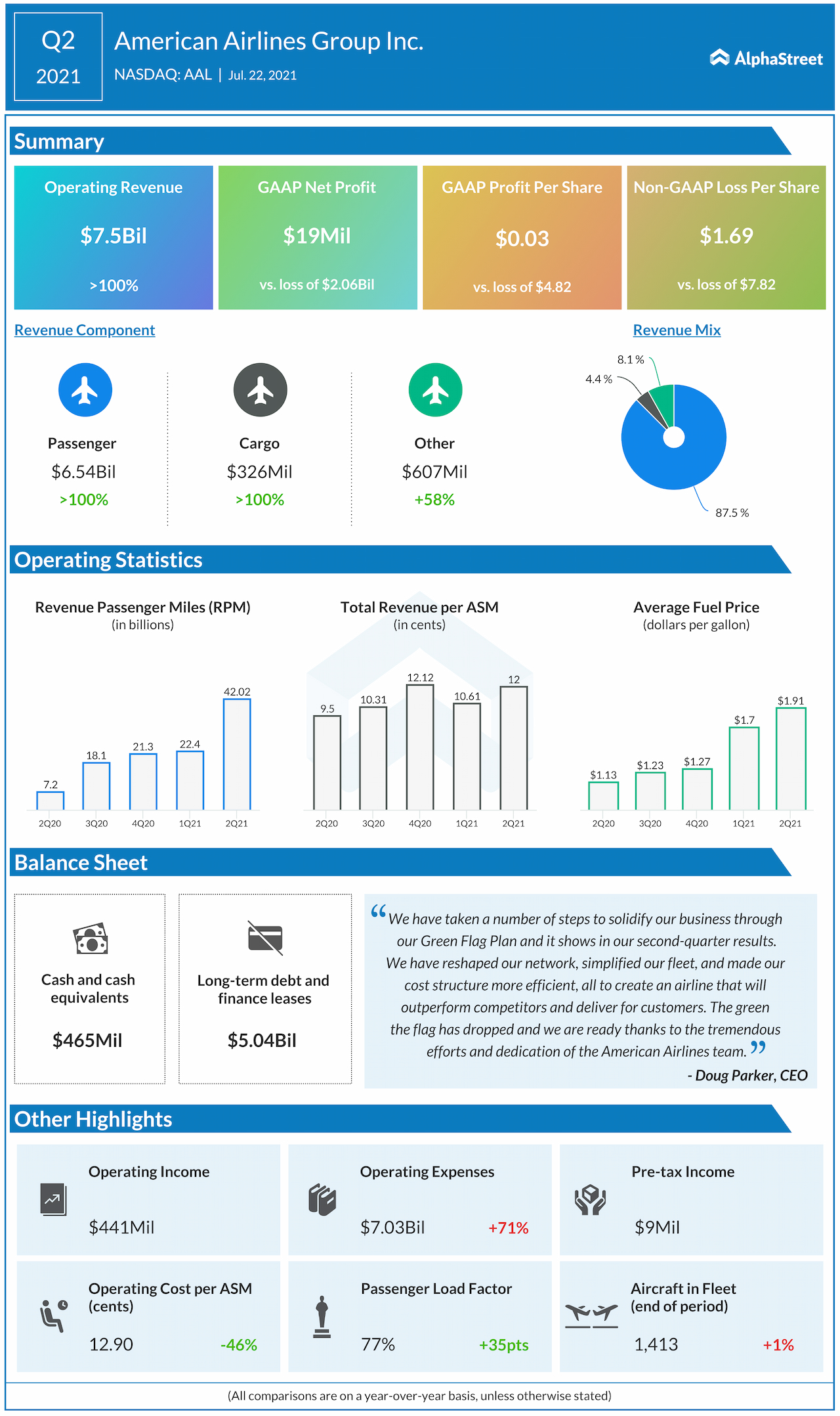 Aviation company American Airlines Group Inc. (NASDAQ: AAL) reported its financial results for the second quarter of 2021 today.