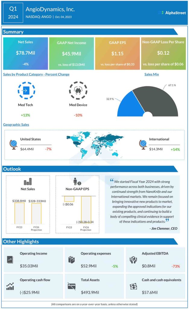 Infographic: AngioDynamics reports adjusted loss for Q1 2024; sales down 4%