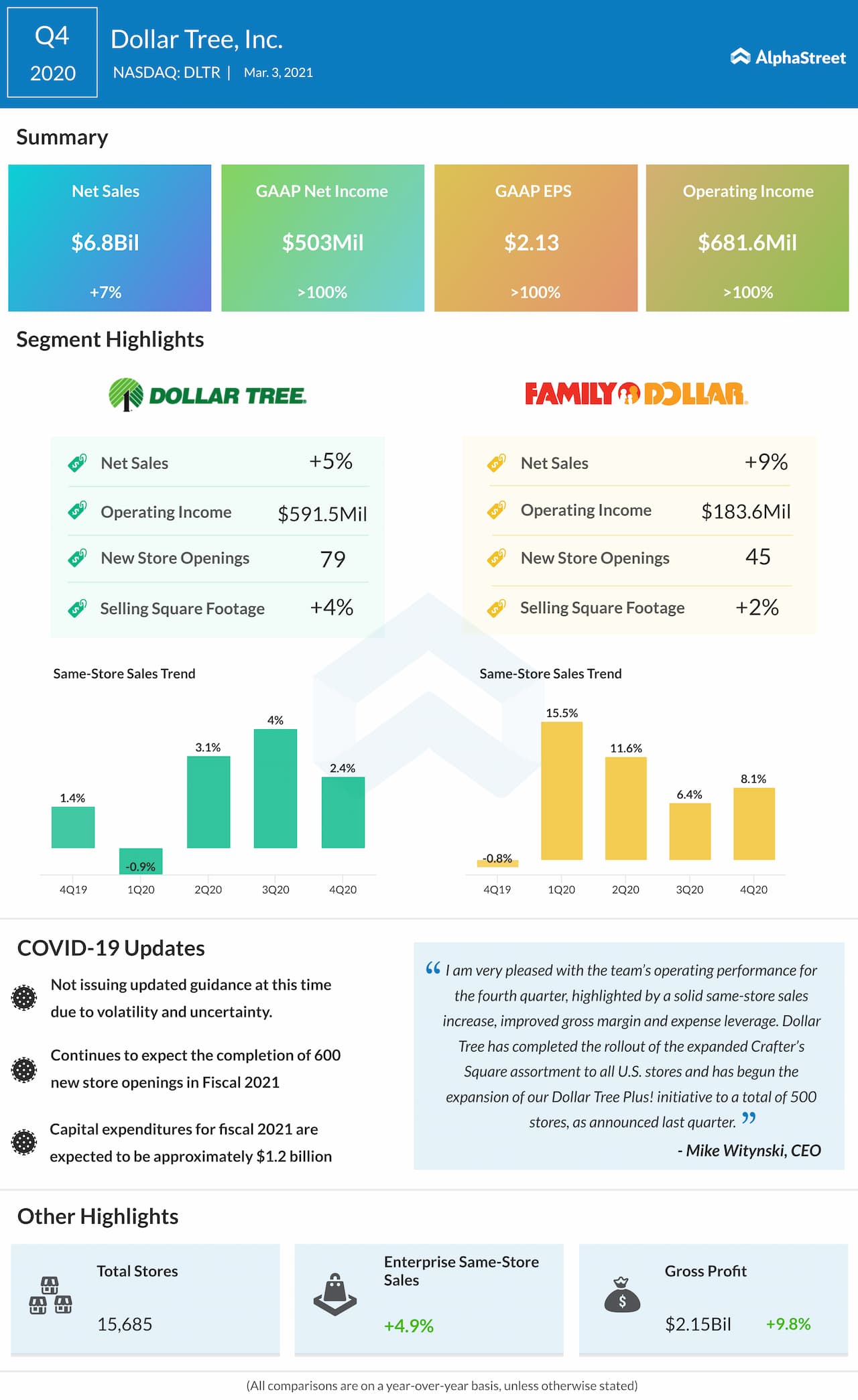 Dollar Tree (NYSE: DLTR) reported fourth-quarter financial results before the opening bell on Wednesday.