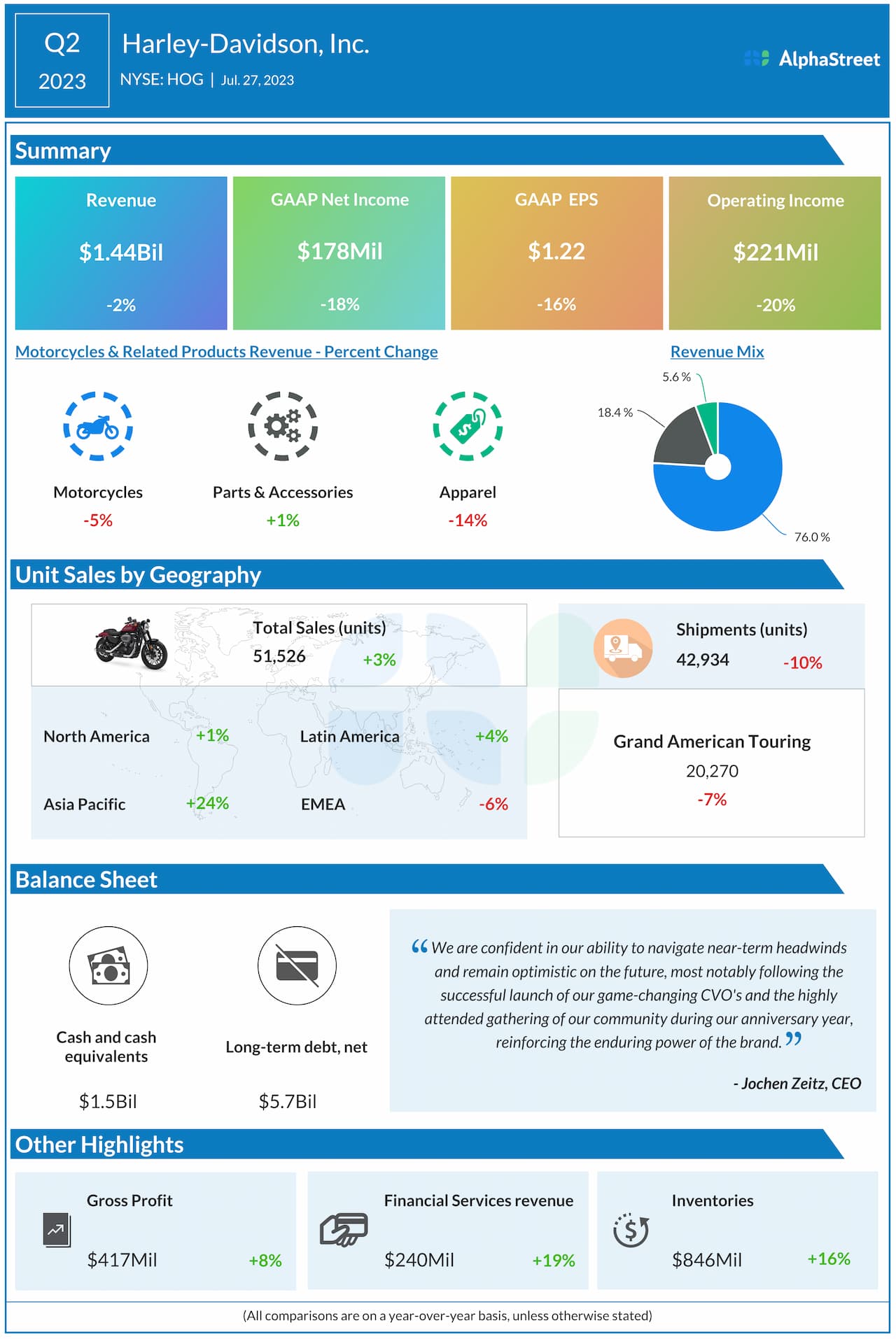 Harley-Davidson, Inc. (NYSE: HOG) reported second quarter 2023 earnings results today.