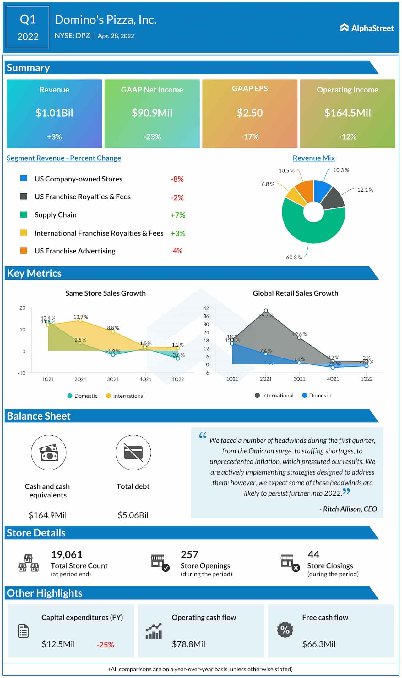 Read management/analysts’ comments on Domino’s Q1 2022 earnings