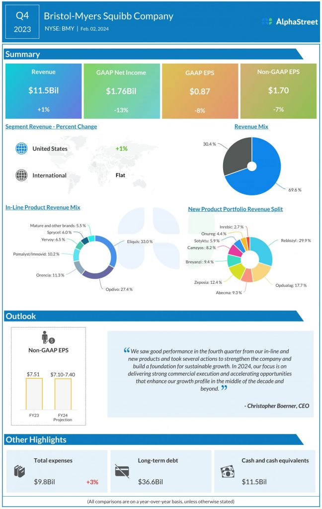 Net earnings attributable to BMS were $1.76 billion, or $0.87 per share, compared to $2 billion, or $0.95 per share, last year. Adjusted EPS decreased 7% to $1.70.