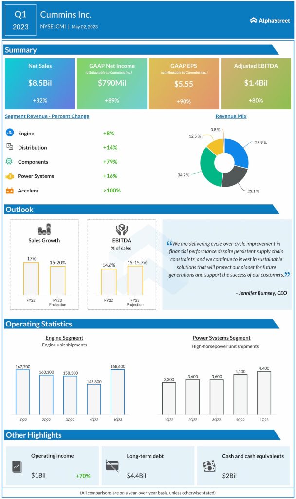 Cummins Inc. (NYSE: CMI) reported its first quarter 2023 earnings results today.