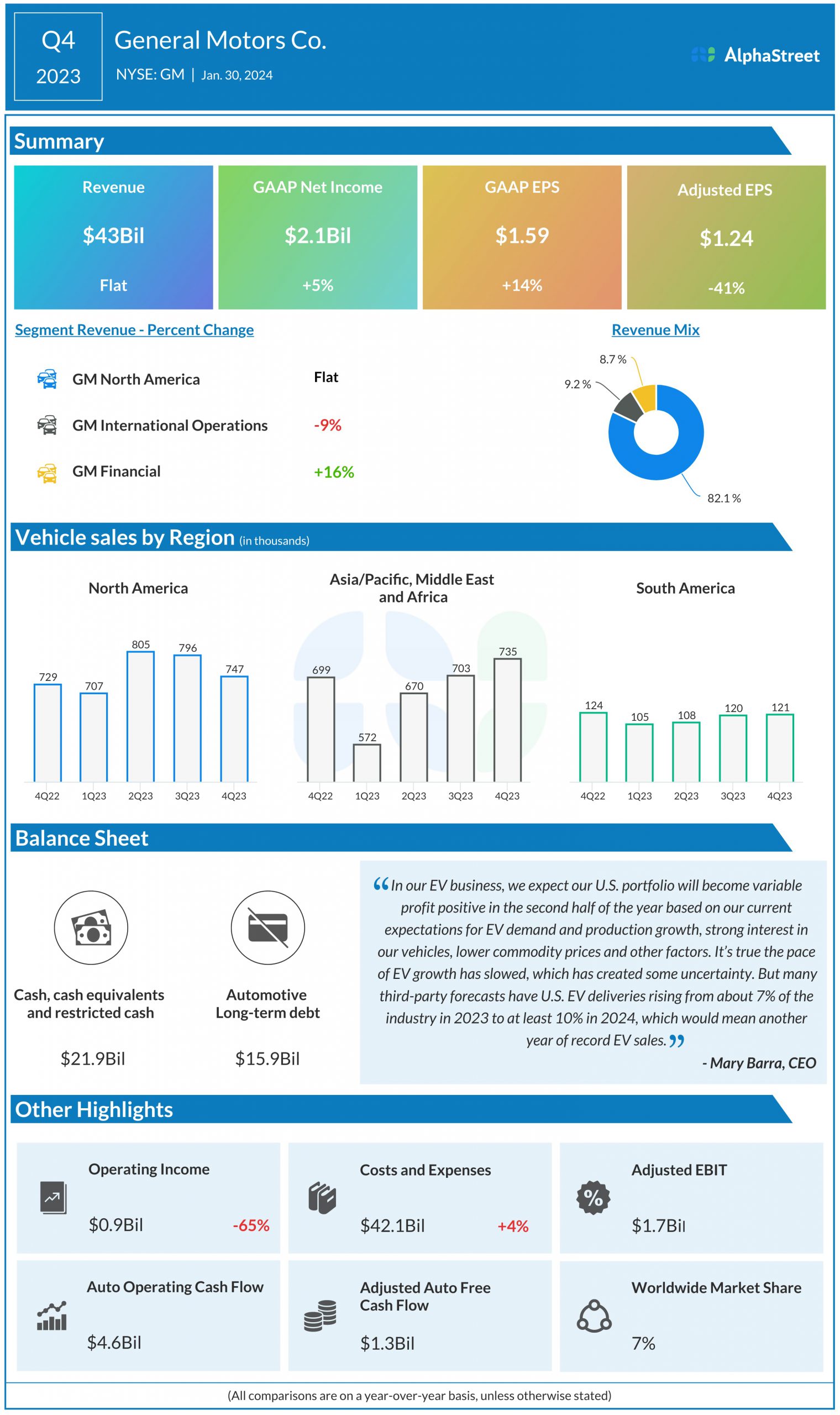 General Motors Co. (NYSE: GM) reported fourth quarter 2023 earnings results today.