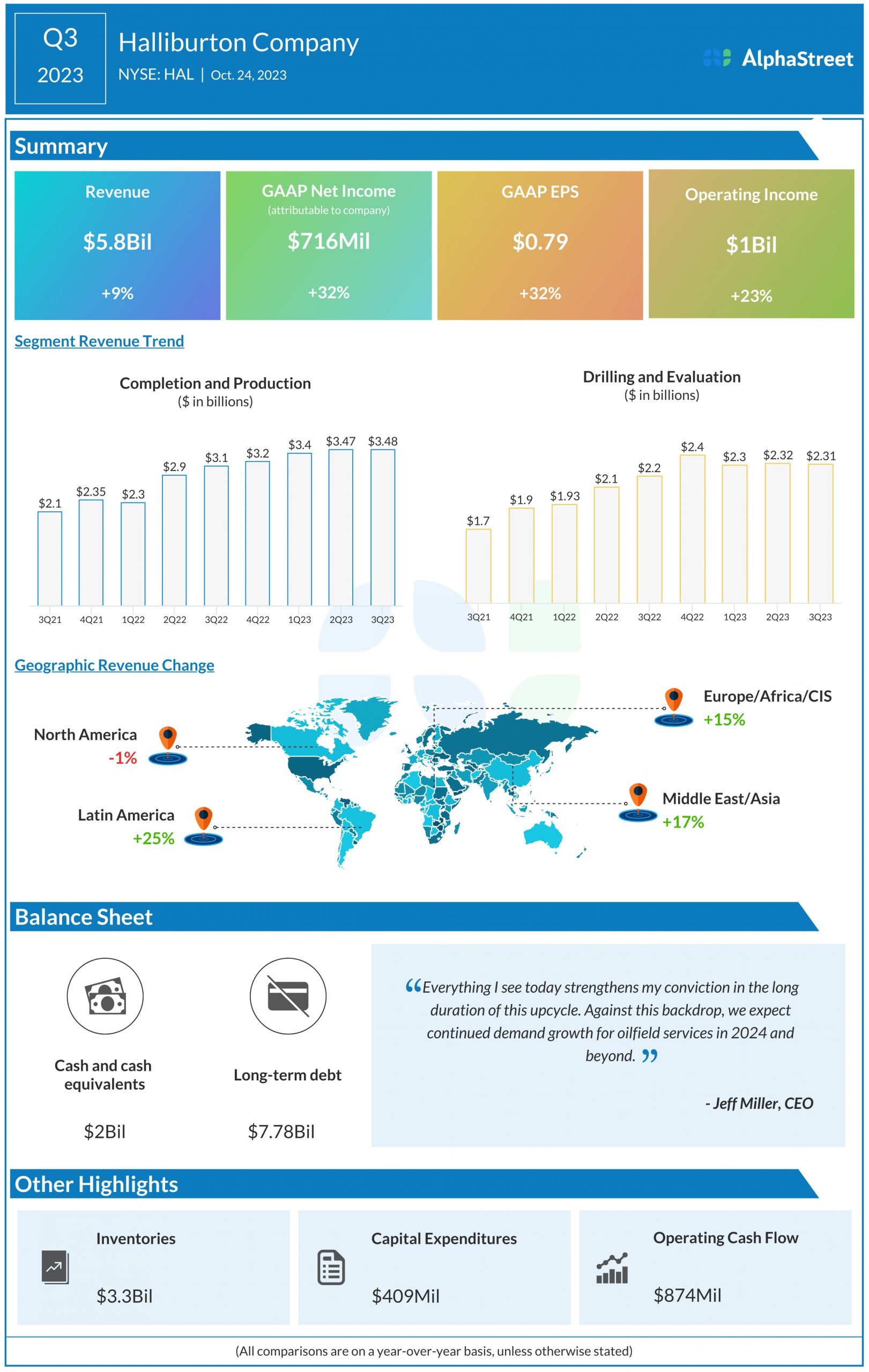 Halliburton Company (NYSE: HAL) reported third quarter 2023 earnings results today.