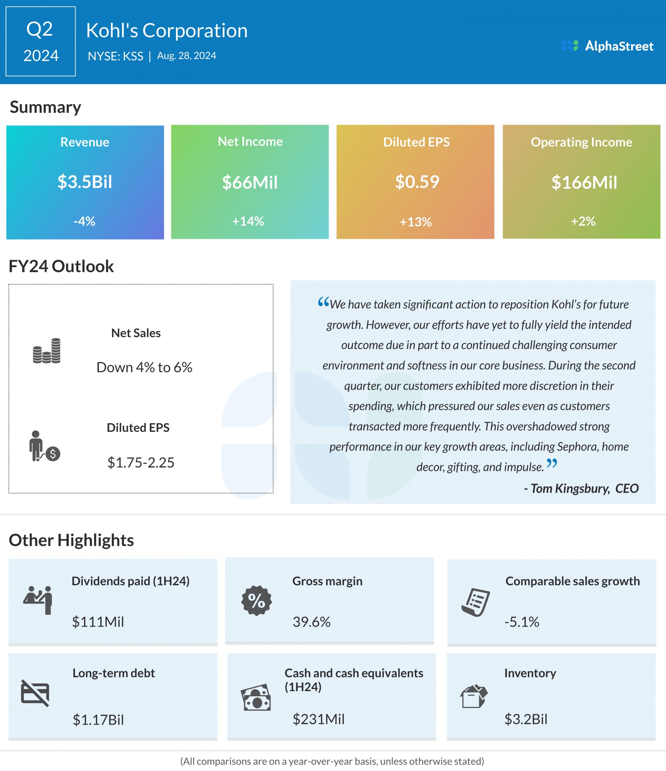 Kohl’s Corporation (NYSE: KSS) reported its second quarter 2024 earnings results today.