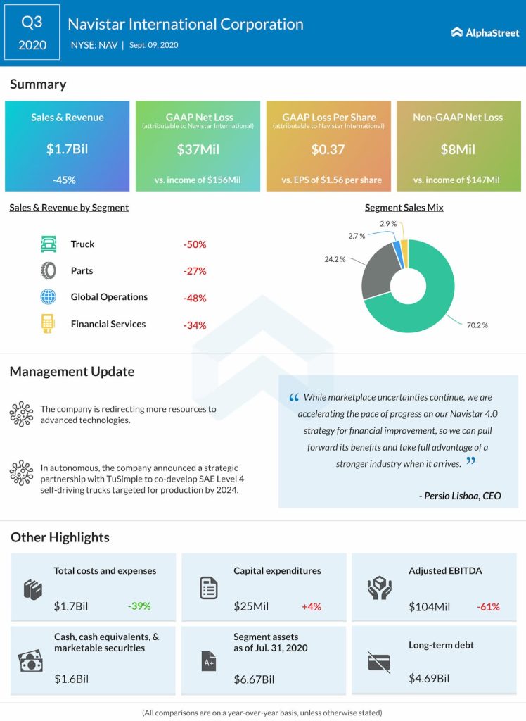 Navistar International Corporation (NYSE: NAV) reported third quarter 2020 earnings results today.