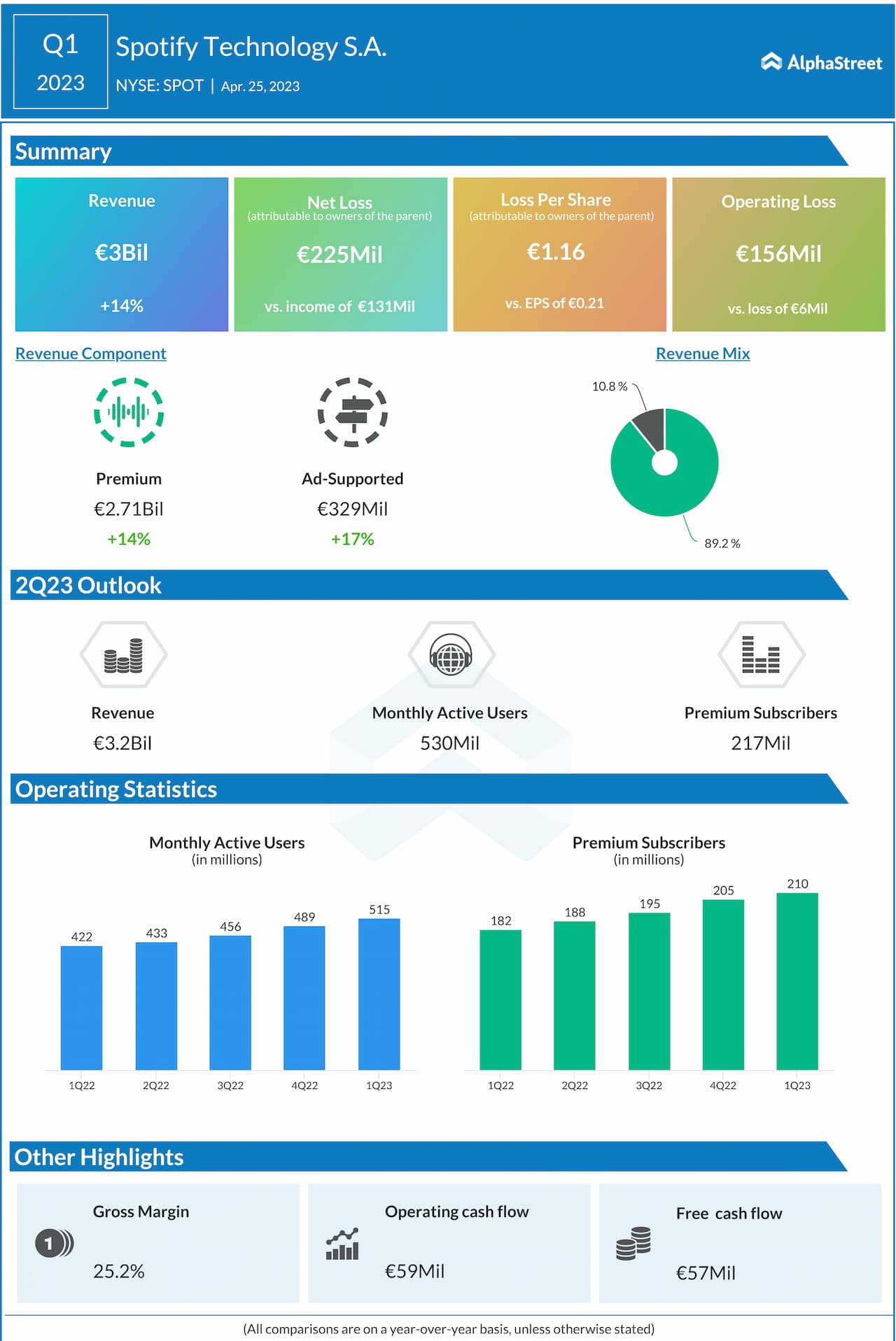 Spotify (NYSE: SPOT) reported its first quarter 2023 earnings results today.