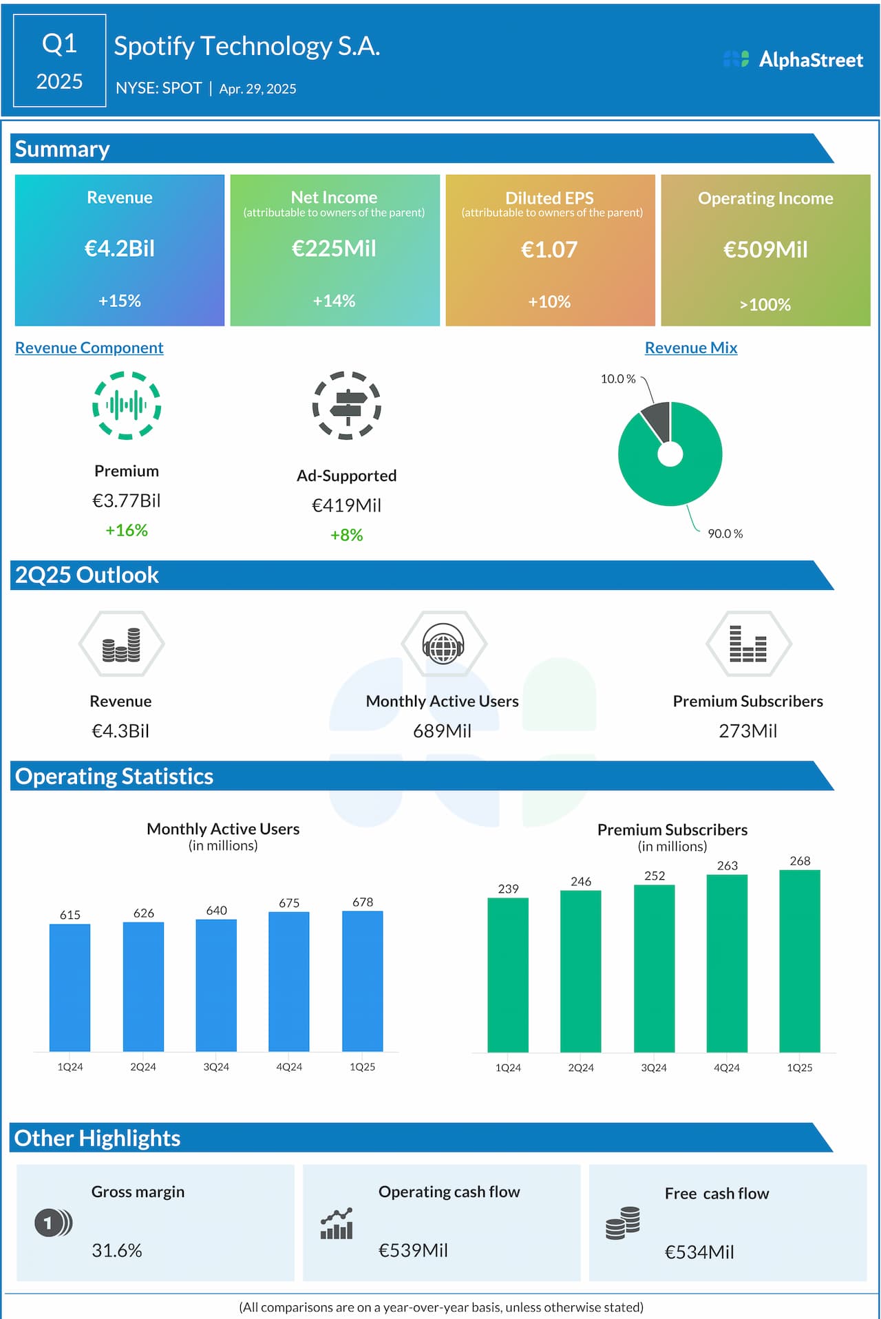 Spotify Technology S.A. (NYSE: SPOT) reported its first quarter 2025 earnings results today.