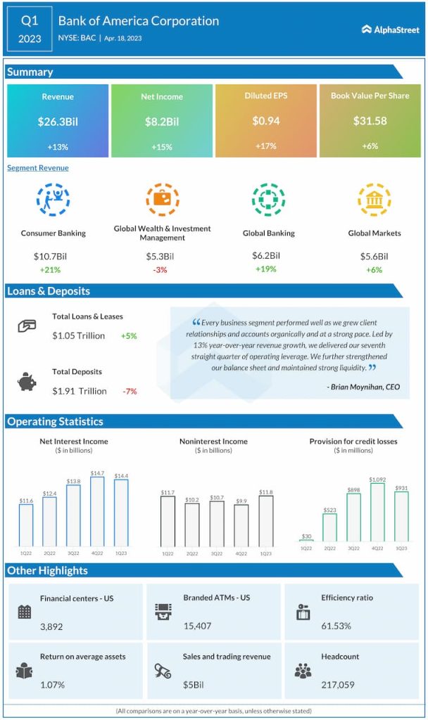 Net income rose 15% to $8.2 billion, or $0.94 per share, compared to last year.