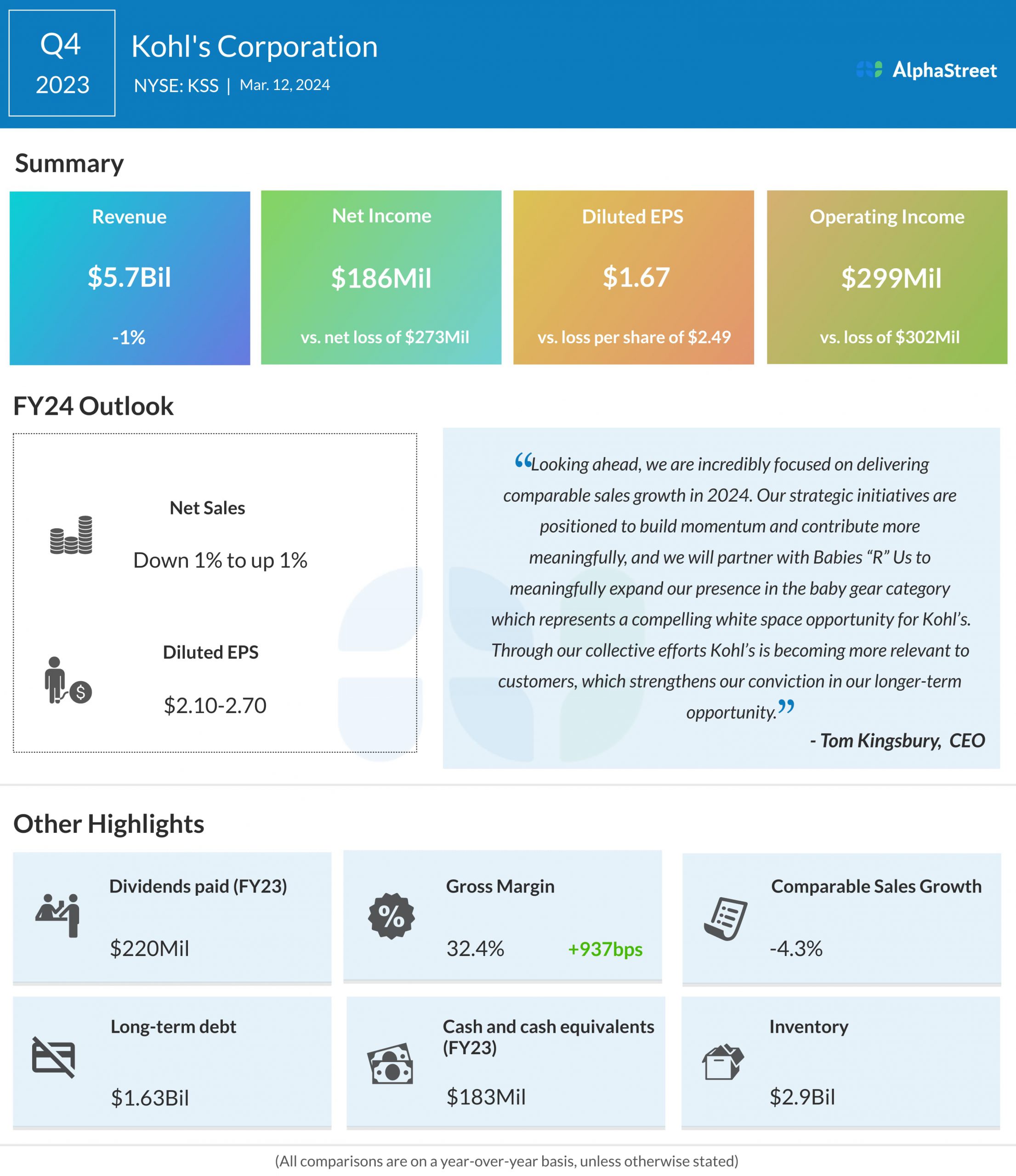Kohl’s Corporation (NYSE: KSS) reported its fourth quarter 2023 earnings results today.