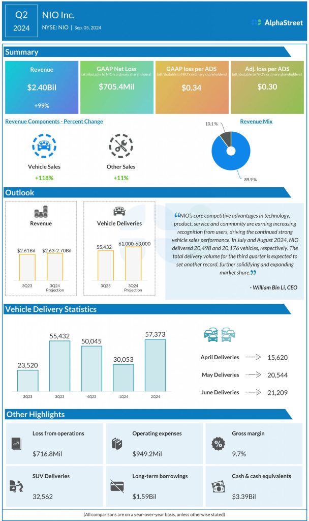Vehicle deliveries were 57,373 in the second quarter of 2024, up 143.9% from last year.