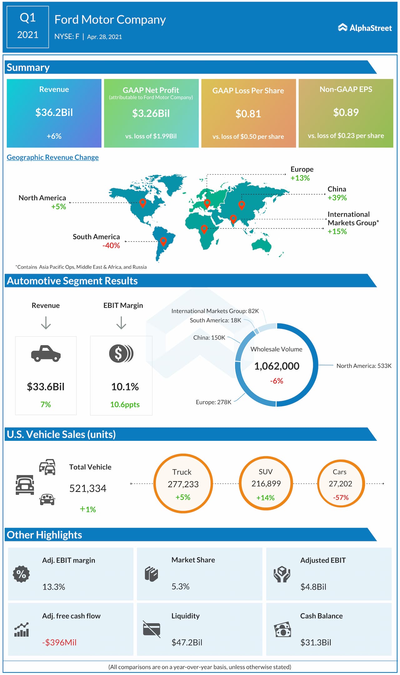 Ford Motor Company (NYSE: F) reported first-quarter 2021 earnings results today.