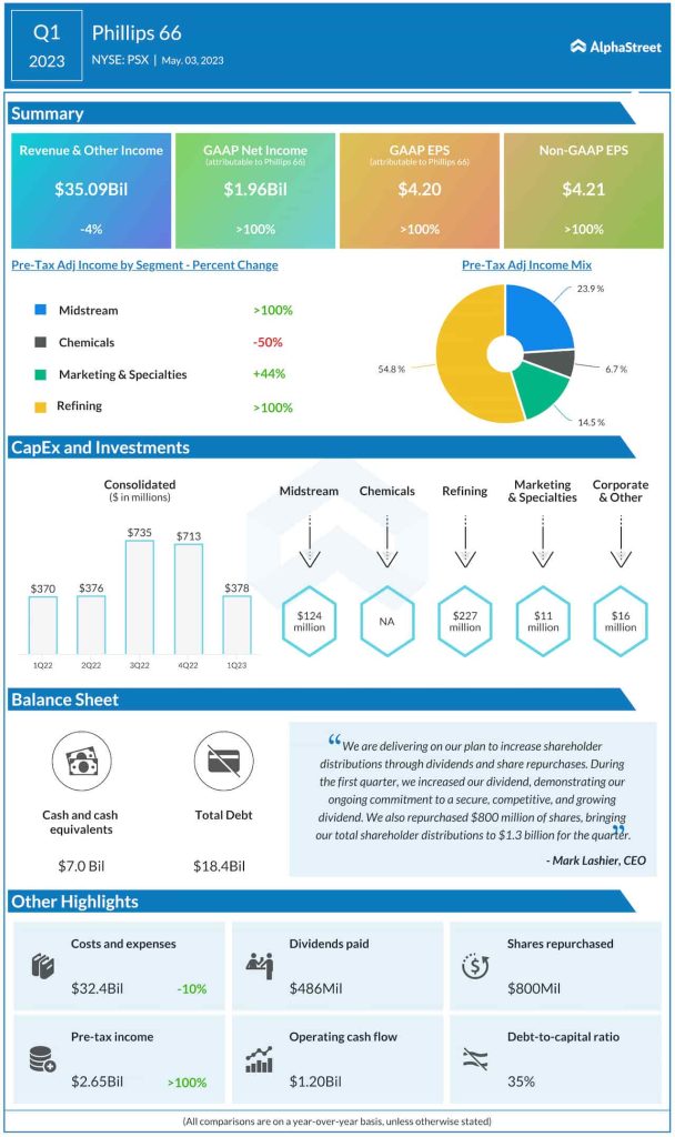 “We continued to make progress on our strategic priorities, delivering strong financial and operating results in the quarter,” said Mark Lashier, CEO of Phillips 66.