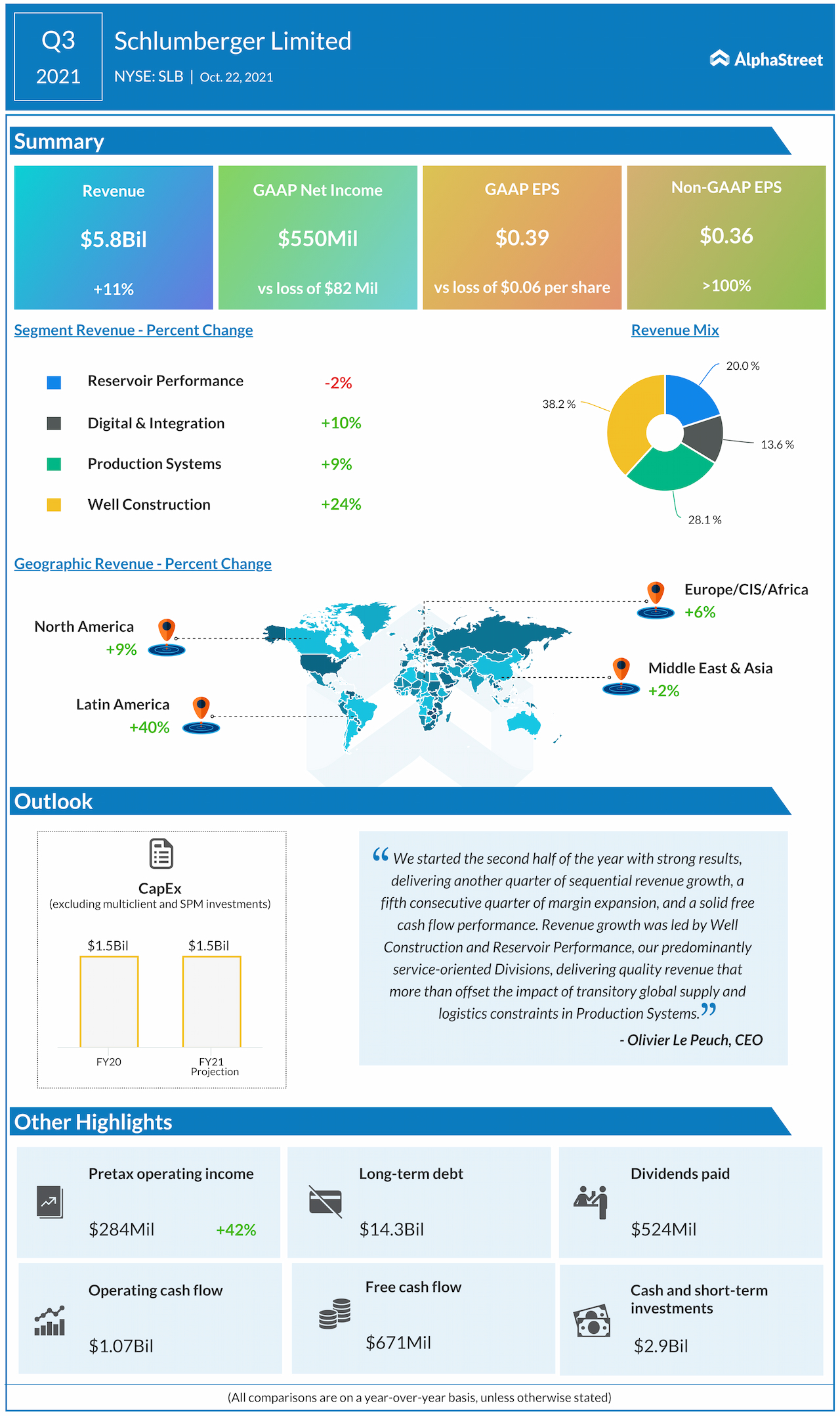 Schlumberger Limited (NYSE: SLB) came up with its third-quarter 2021 results on Friday.
