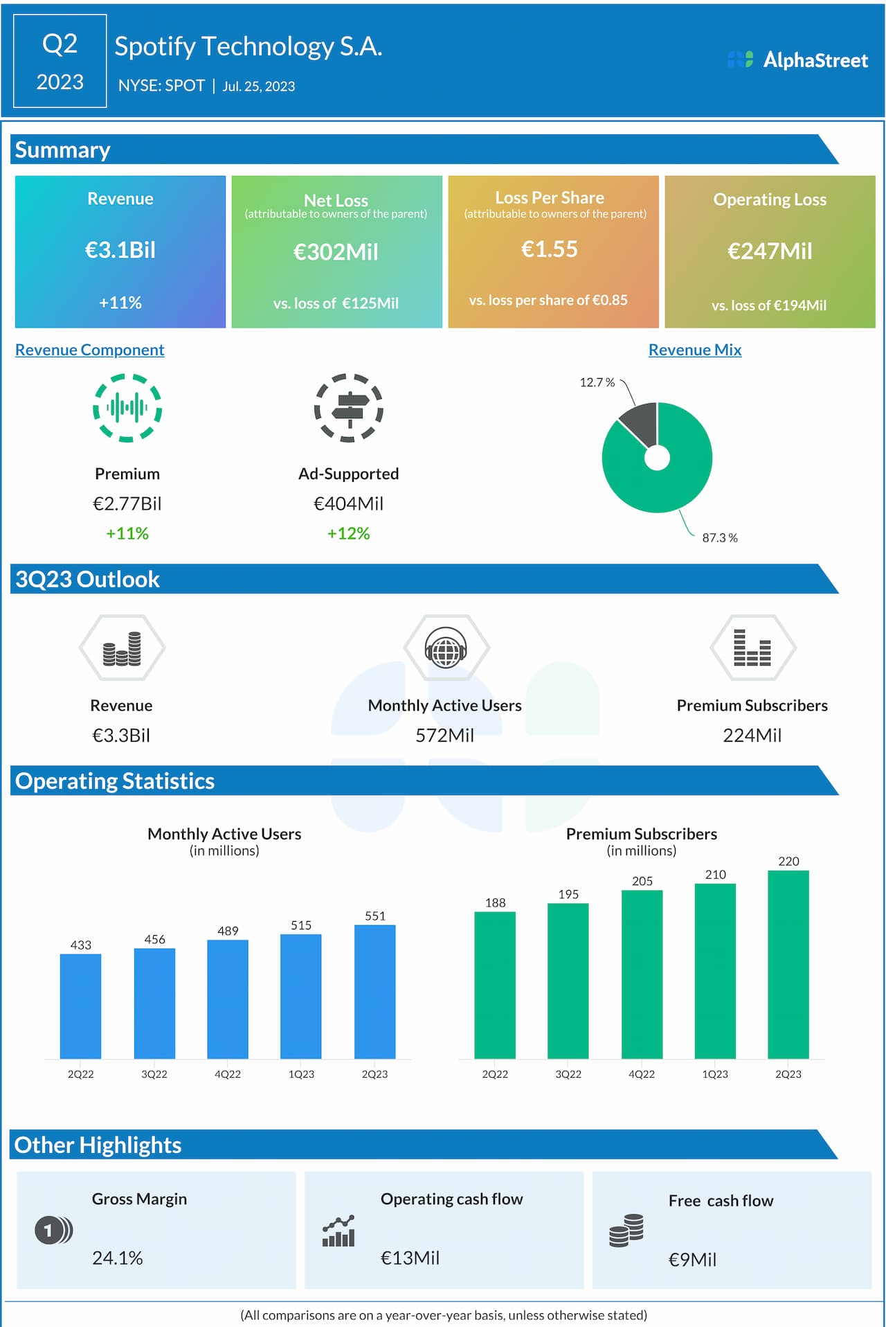 Spotify Technology S.A. (NYSE: SPOT) reported second quarter 2023 earnings results today.