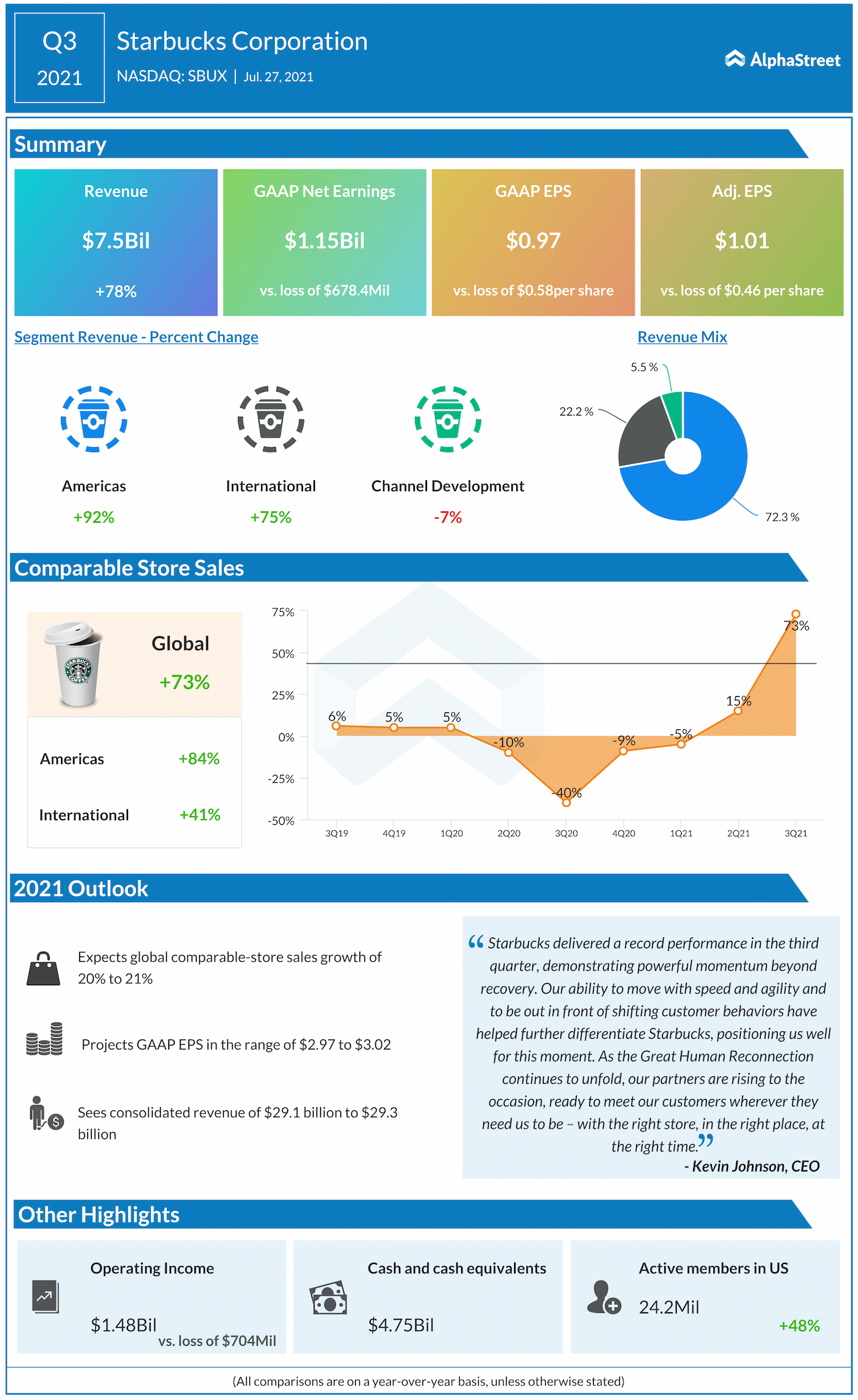 Starbucks Corporation (NASDAQ: SBUX) reported third-quarter 2021 financial results after the closing bell on Tuesday.