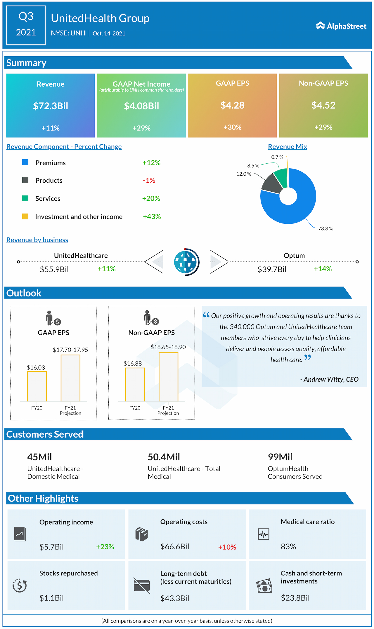 Revenues grew 11% to $72.3 billion year-over-year with Strong and Diversified Growth across Optum and UnitedHealthcare.