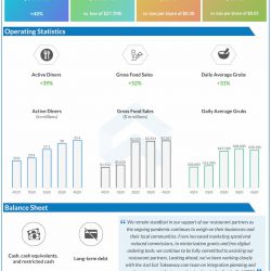 GrubHub Inc. (NYSE: GRUB) reported fourth quarter 2020 earnings results today. Revenues rose 48% year-over-year to $503.7 million. Net loss was $67.8 million, or $0.73 per share, compared to a loss of $27.7 million, or $0.30 per share, last year.
