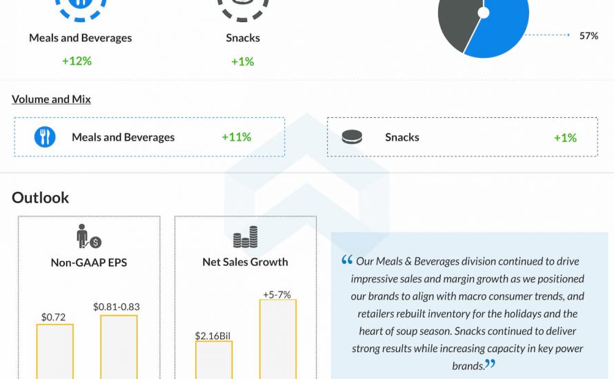 Campbell Soup Company (NYSE: CPB) reported first quarter 2021 earnings results today. Net sales rose 7% year-over-year to $2.34 billion, driven by strength in the Meals & Beverages and Snacks segments. Net earnings attributable to Campbell Soup Company rose 86%